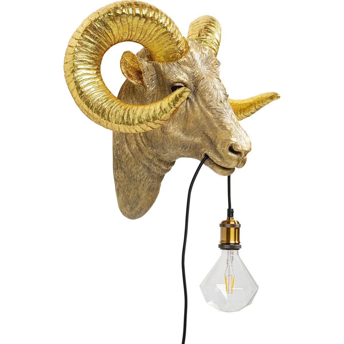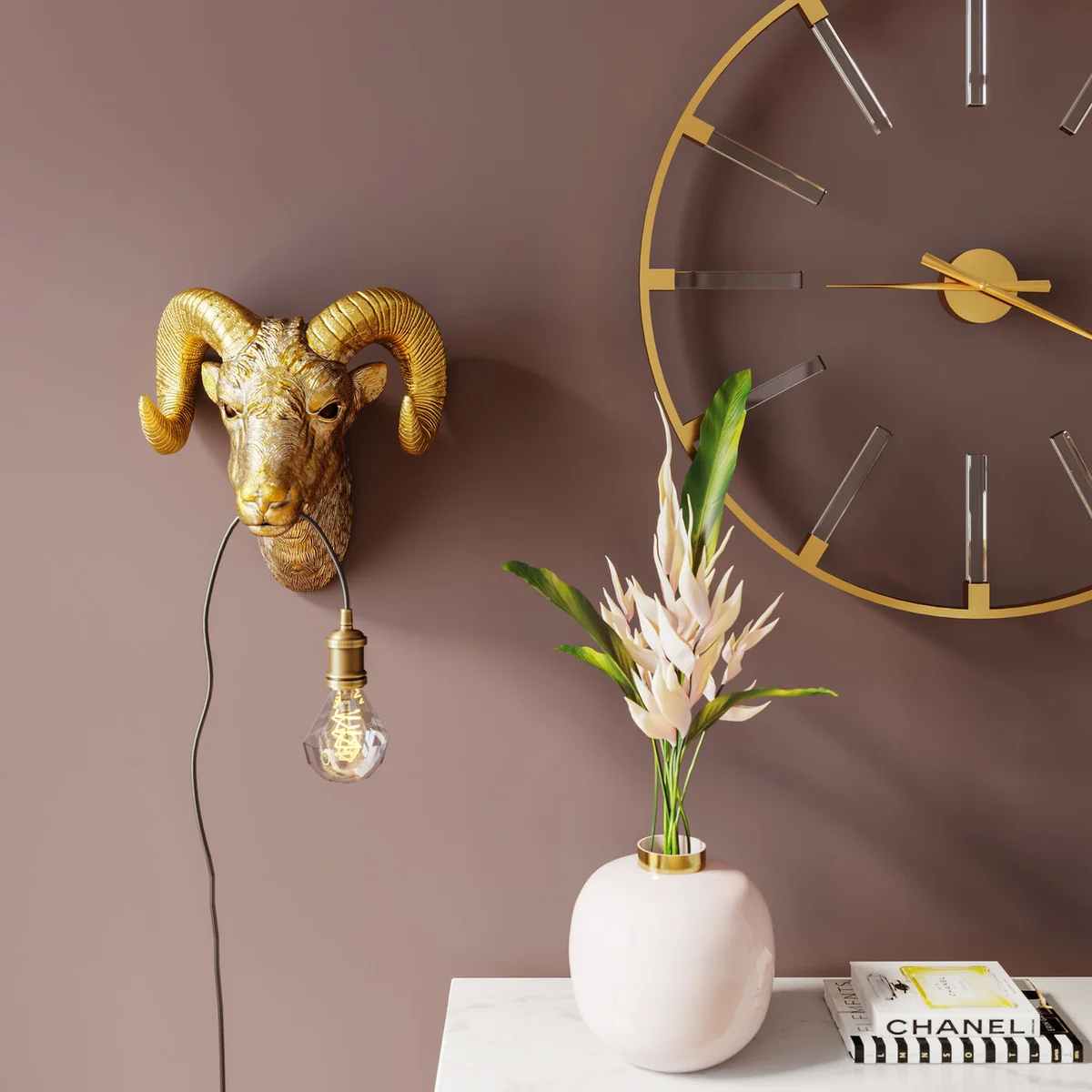 A cosy home needs decorative accessories and lamps. They are like gems that really round off the styling of a room. Animal motifs are in vogue, like this ram’s head with its decorative flair and illuminating function.