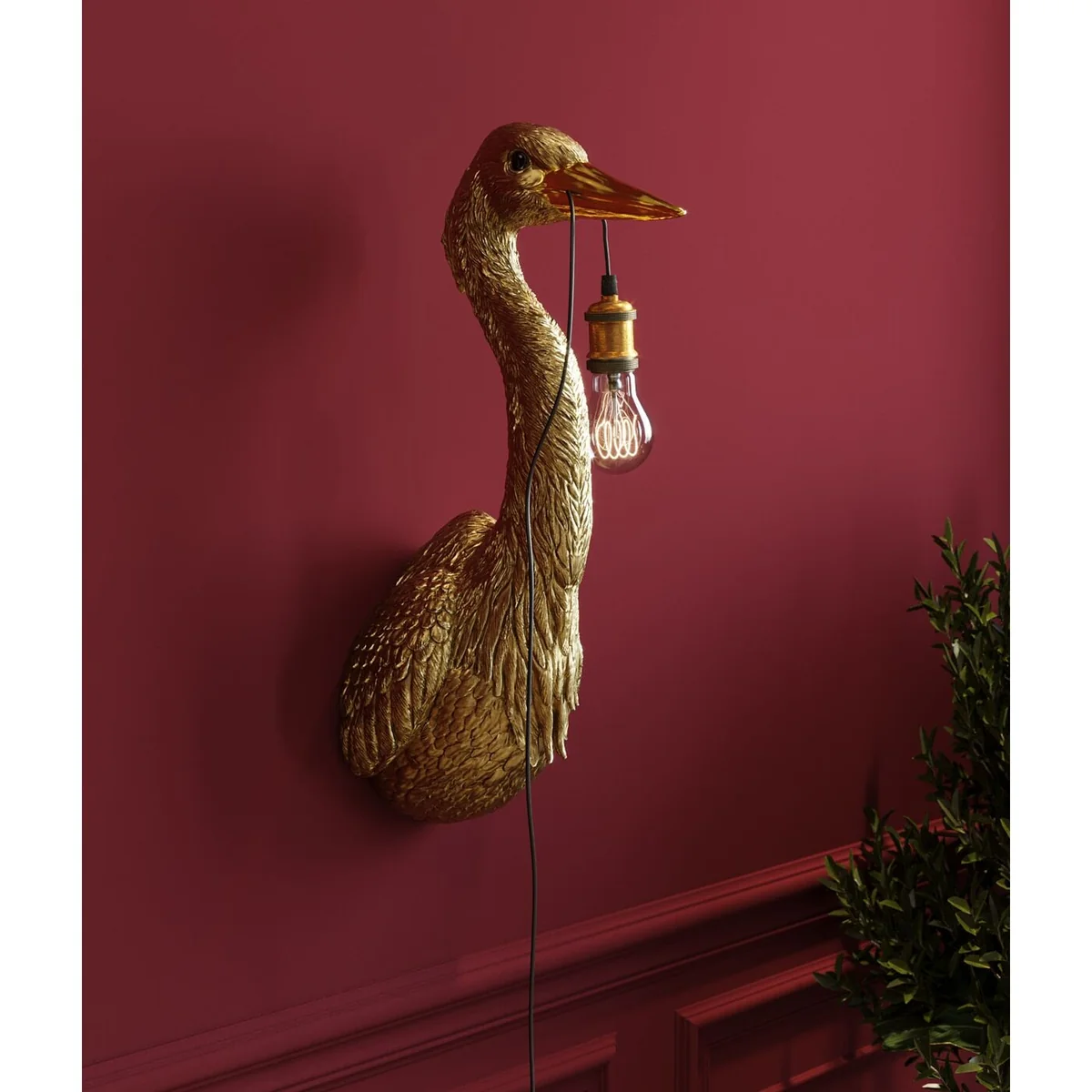 Introducing the Heron Wall Lamp in Brown Polyresin, a unique blend of style and functionality for your home. This modern lamp adds a warm, inviting glow to any space.