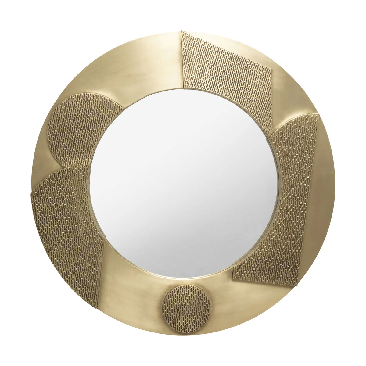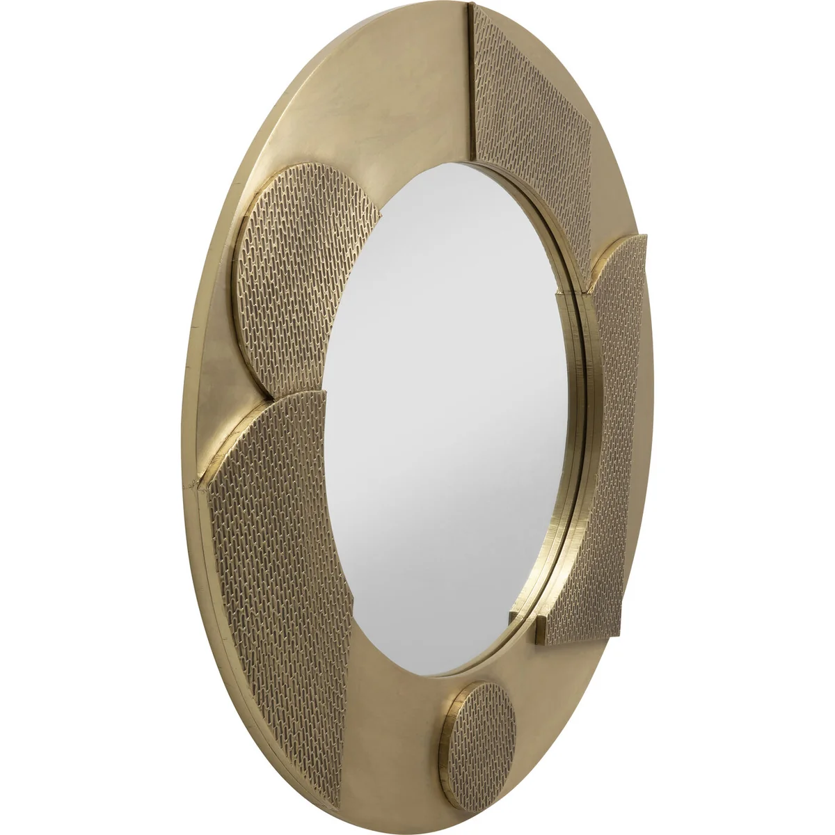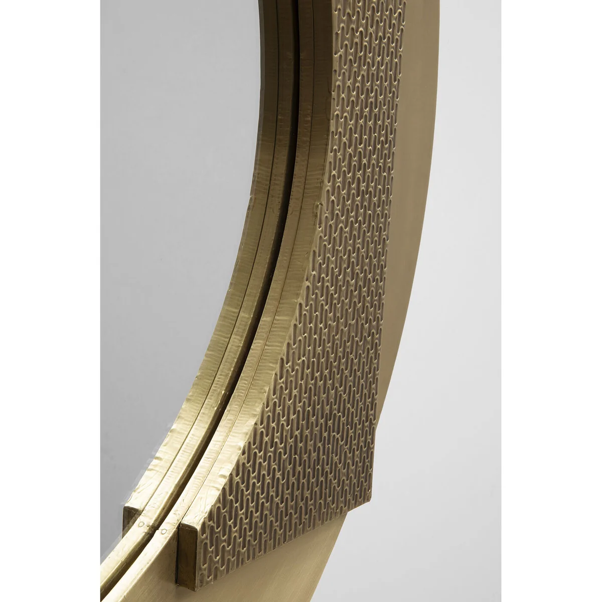 A handcrafted wall mirror in the colours gold and antique gold is the perfect focal point in any room. Due to its shape and its unique design, it gives every room a special atmosphere. Round mirrors with unusual frames are not only a decorative highlight, but also a practical accessory. They can visually enlarge rooms, reflect the light and so create a bright and friendly atmosphere. Whether in the living room, bedroom or entrance area, this mirror will add class and subtle glamour to your home. The reflecting surface has a diameter of 50 cm.