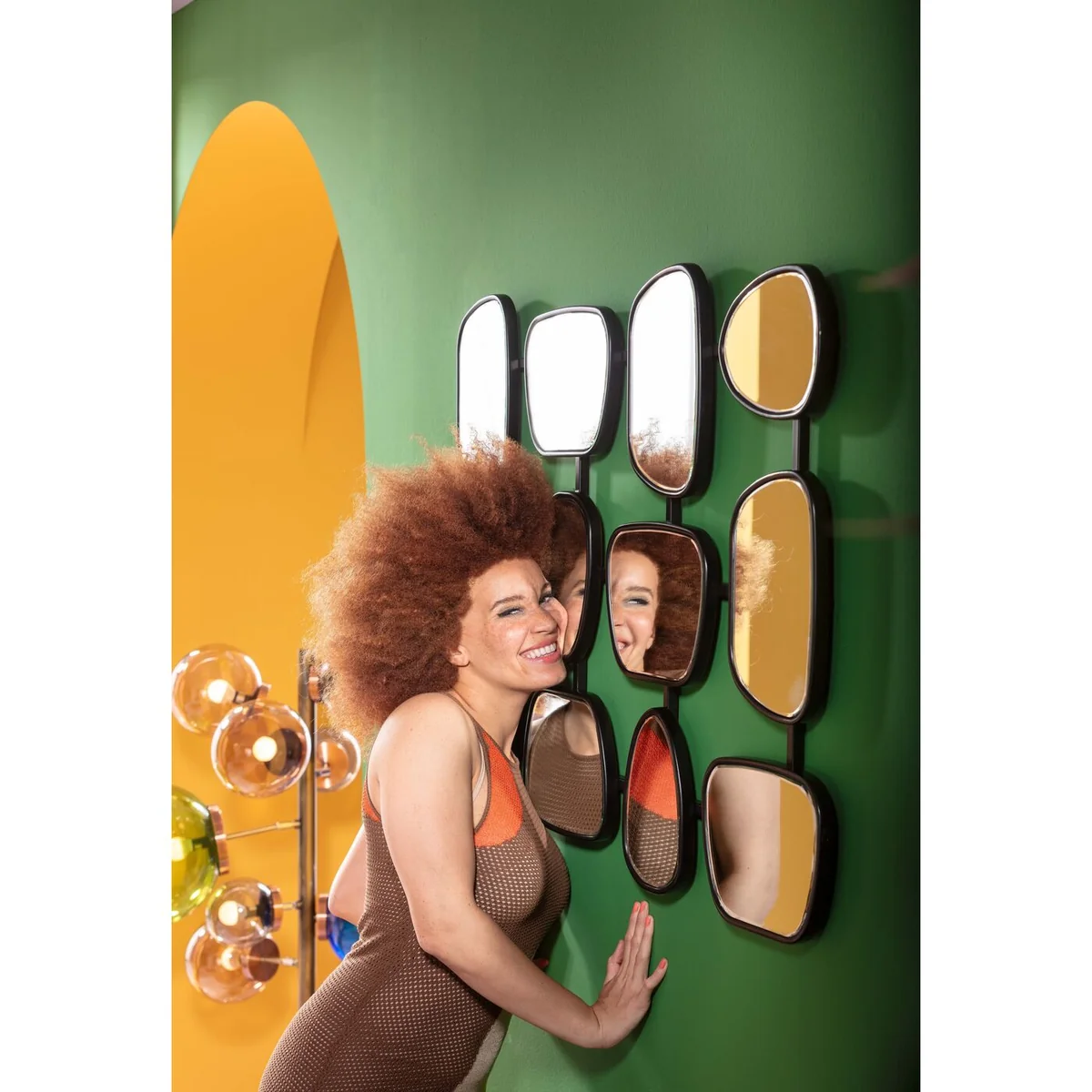 This rectangular wall mirror is composed of several small mirrors and forms a unique reflecting object. With its design, the mirror is ideal as a decorative element in the living area. Mirrors reflect light, adding depth and brightness to the room. The mirror can be mounted horizontally or vertically, providing maximum flexibility in use.