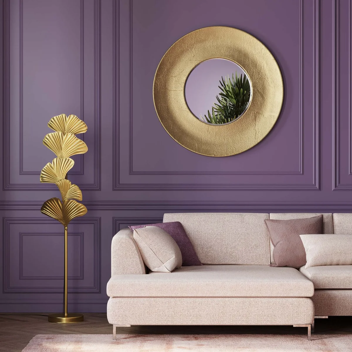 - XL round and golden wall mirror: a real focal point with a diameter of 108 cm - Modern design: simple and timeless, but a statement for every style of furnishing thanks to the special frame - Low weight: with 7 kg a lightweight despite its size - Decorative idea: an elegant alternative to pictures above the sofa - Easy to hang: hooks for hanging on the wall are already fitted to the back