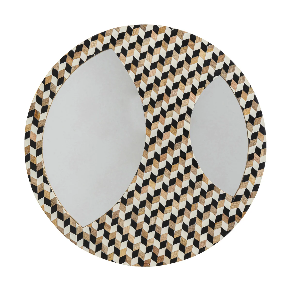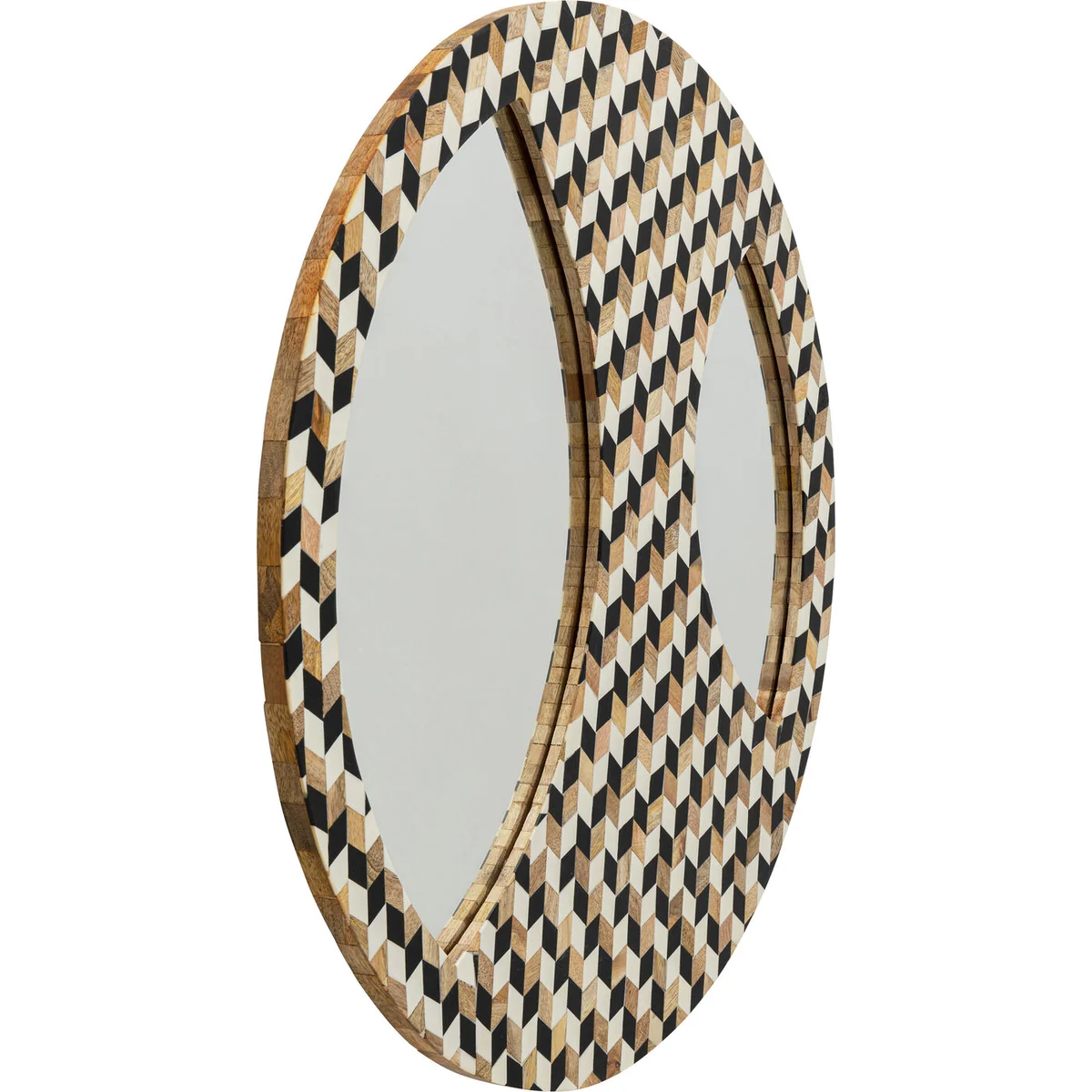 At 67cm in diameter, framed in durable epoxy resin, this mirror combines function with fashion in a beautiful way. Its multicolored design, coupled with a sleek 1.5cm width, offers a unique, contemporary aesthetic that will enhance any room.