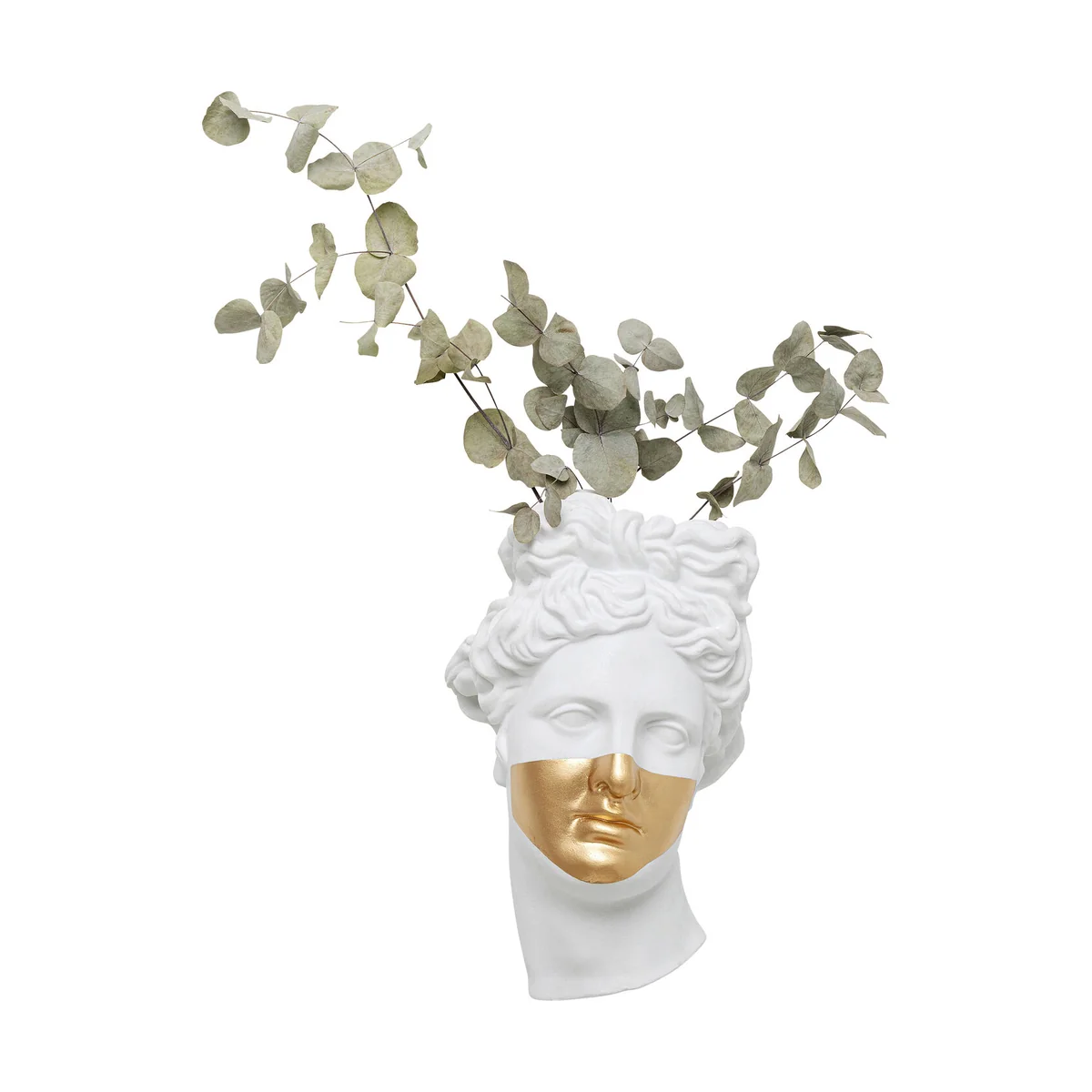 - Antique chic is a hot trend! Decorative object in white and gold for the wall in the style of classic sculptures - Like a wall-mounted flower pot the opening at the top is ideal for creative decorations to suit your taste - A wall decoration for any style of interior - With a fitting on the back for easy mounting on the wall - Handcrafted with loving care. Each piece is unique and slight deviations from the illustration are possible