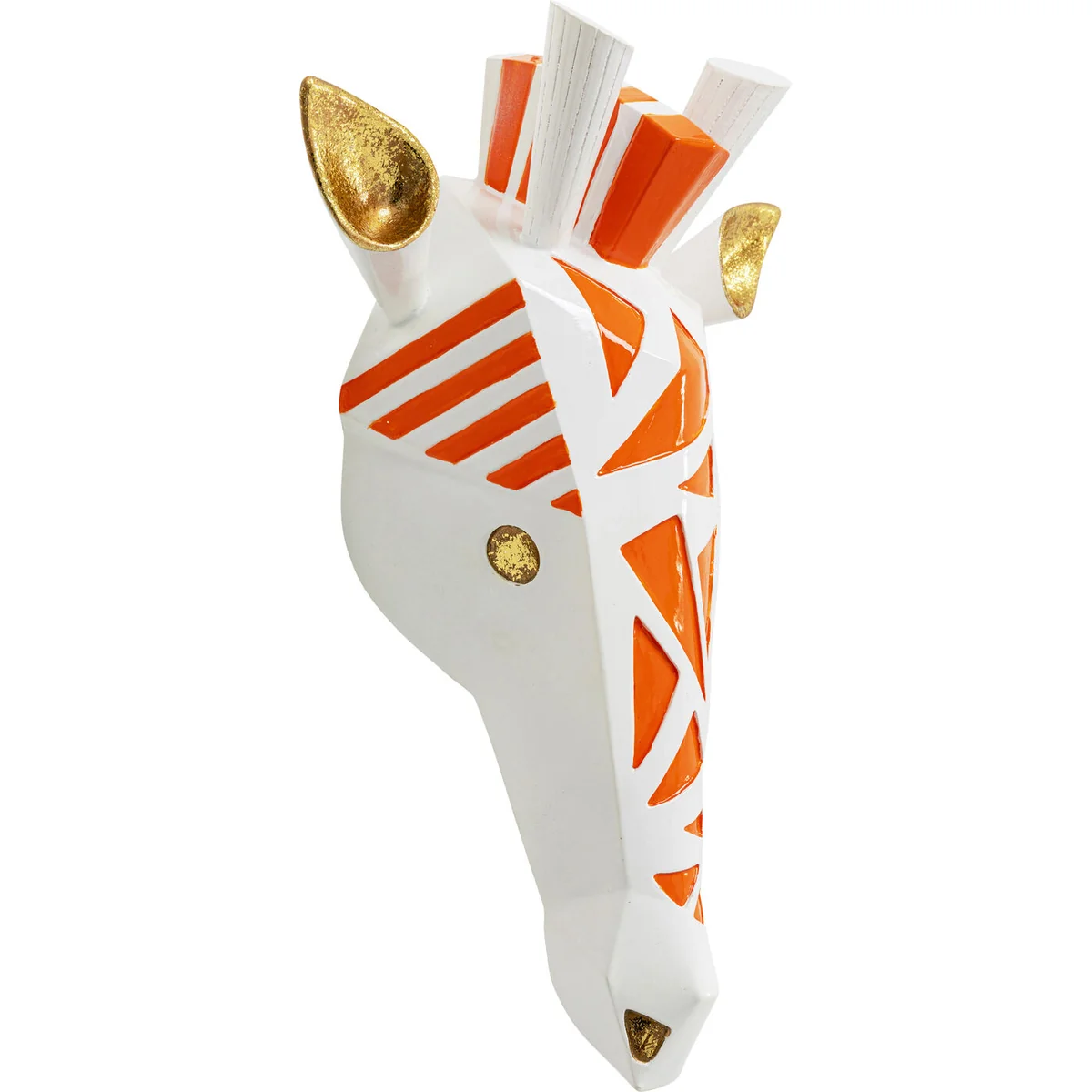 - A decorative object for the wall made of cast stone in white, gold and orange - A giraffe as creative wall decoration in a modern art style - Whether in the kitchen or hallway, this decorative piece has style appeal - Device for hanging with nails or picture hooks on the back - Weight only around 1 kg