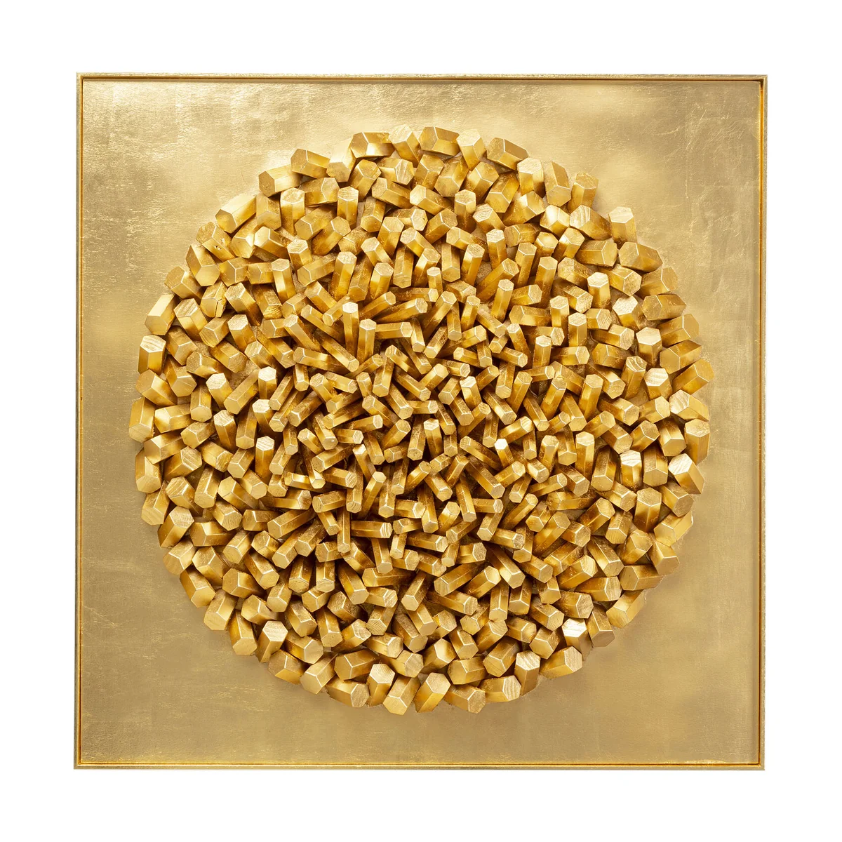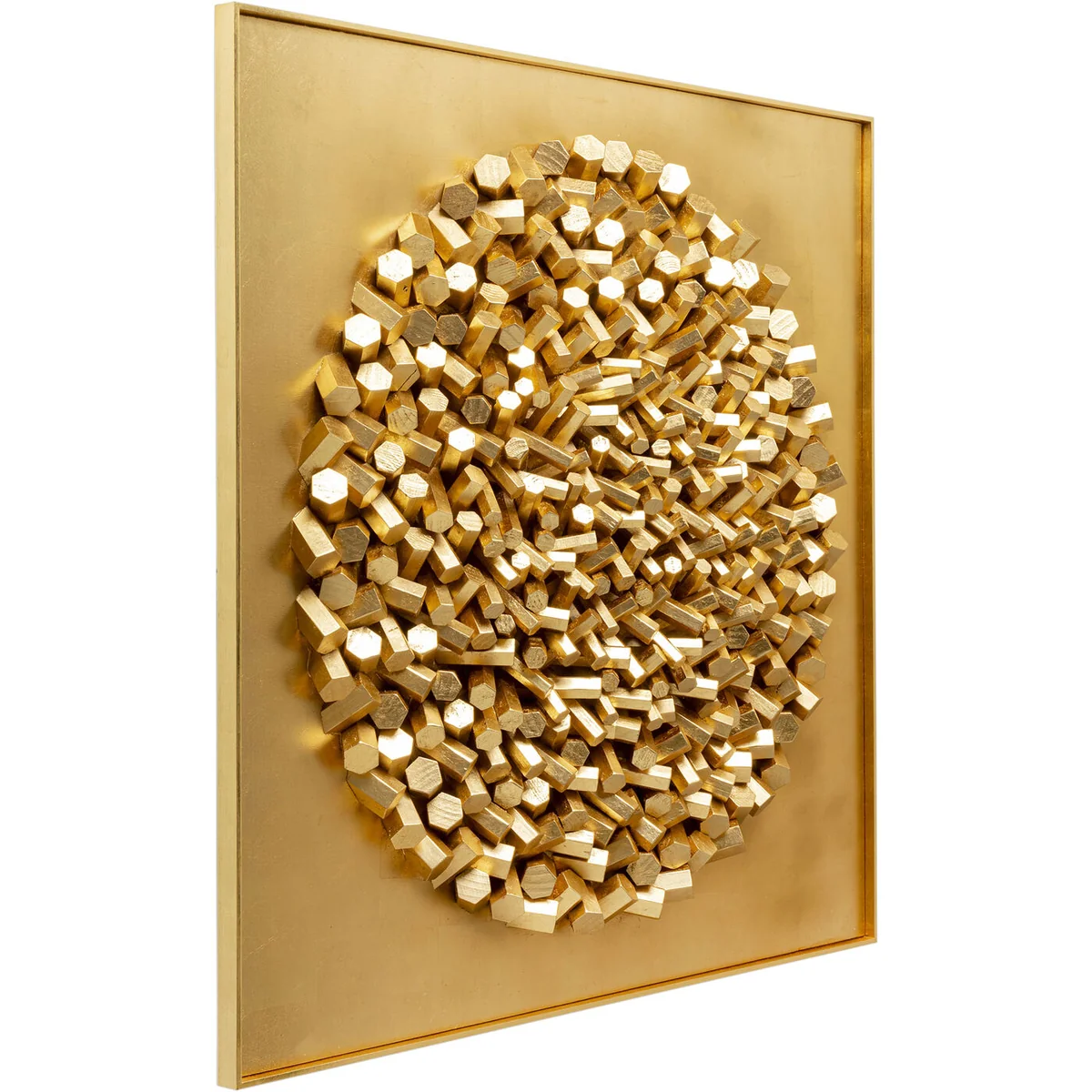 • Gold-coloured XL wall decoration in a frame, 120 x 120 x 10 cm (H/W/D) • All the individual parts of this luxurious picture for the wall are made by hand from solid wood and painted • On the back there are fitted picture hooks on the frame for quick attachment to the wall • Each one is unique and may differ slightly from the illustration