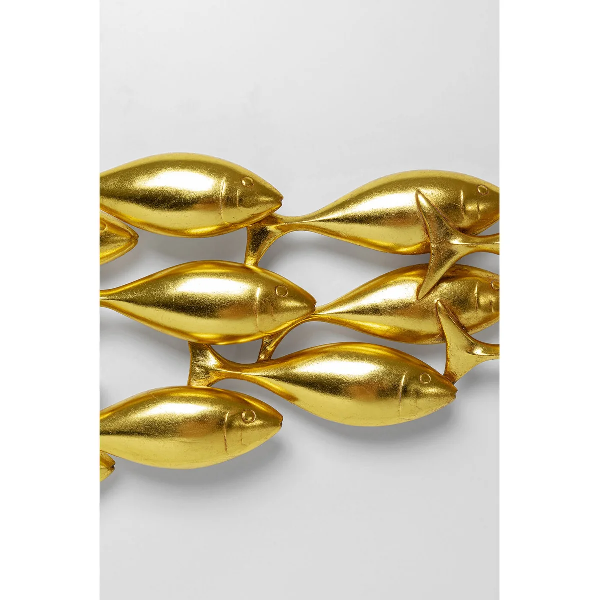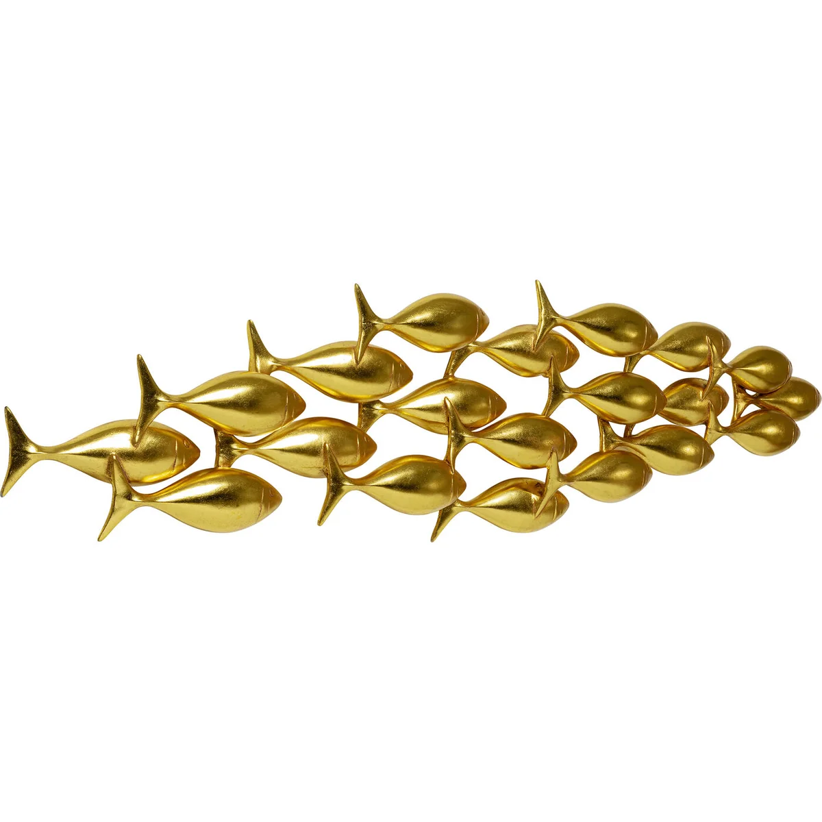 The School of Tuna Gold Wall Object exudes elegance and craftsmanship. This exquisite piece showcases the perfect blend of golden aesthetics and the durability of fiberglass. Measuring 181X41cm, it is the ideal addition to enhance the appeal of interior.