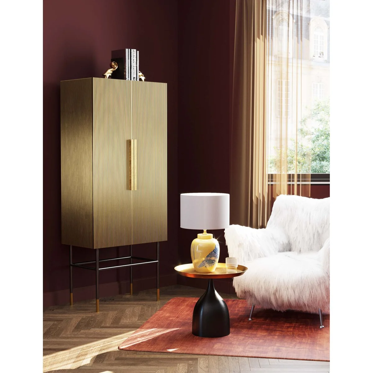 The Oro Wardrobe combines a golden finish with a sleek design for a luxurious touch. Ideal for elegant spaces, it pairs beautifully with plush textiles and bold decor to create a sophisticated, modern look.