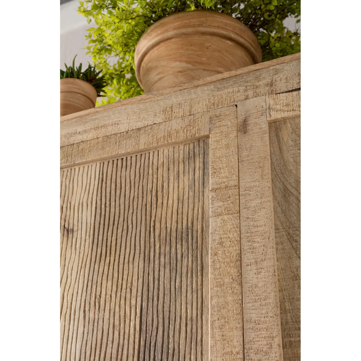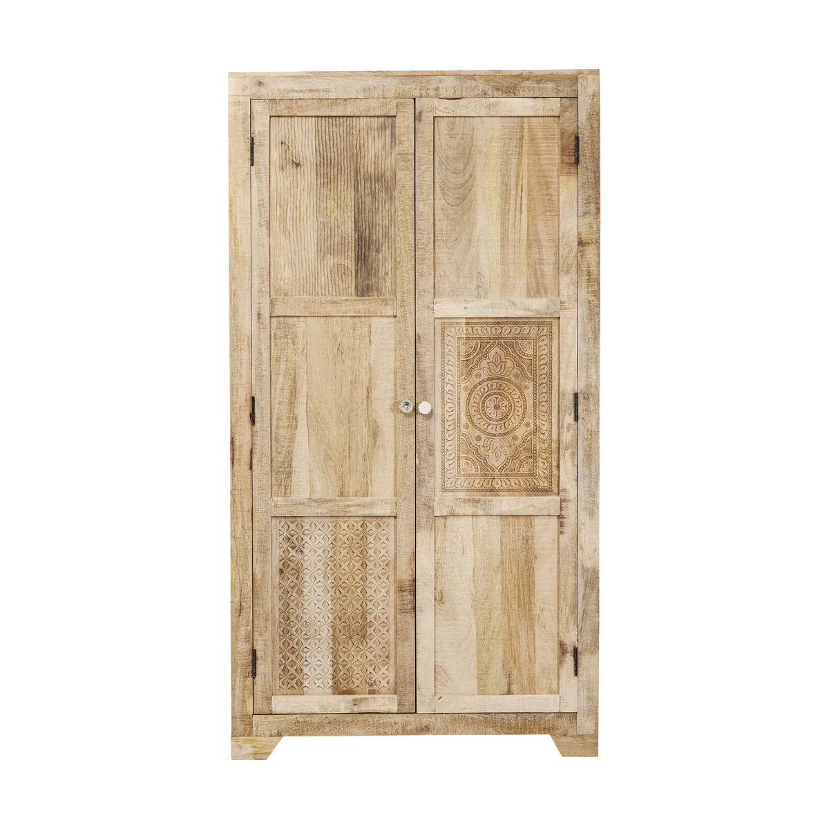 Natural chic. This charming wardrobe from the Puro range makes an impact with its loving, unique details and artistic hand-carved ornaments. The light colour and natural structure of the mango wood make it look fresh and modern. The two individually designed doors conceal storage compartments.