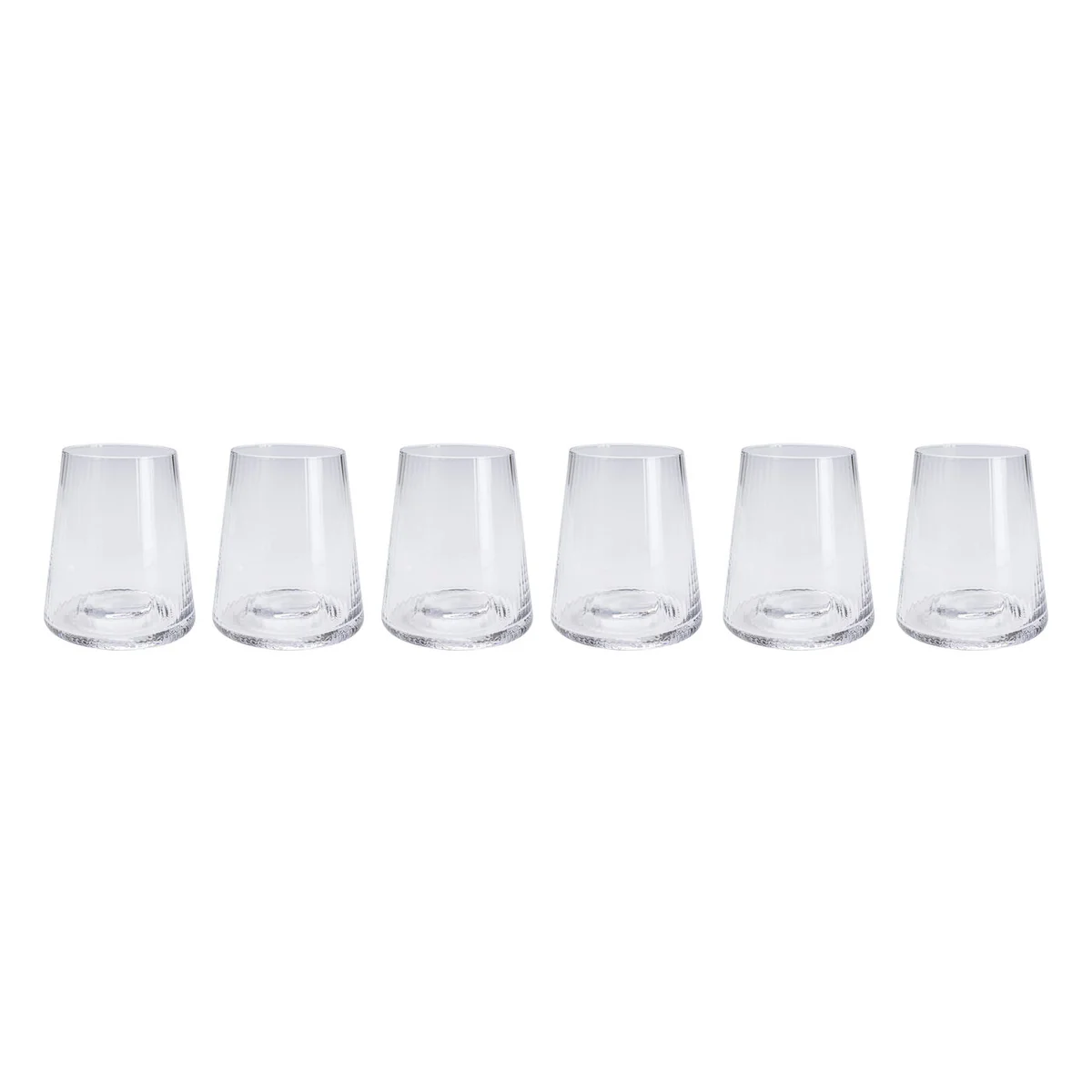 • Modern water glass in a linear design, 11 x 9 x 6.6 centimeters (H/W/D) • The classic shape and ribbed structure make the glass an eye-catcher on any dining table • With a generous capacity of 440 ml, the glass is ideal for refreshing drinks • Dishwasher-safe and therefore perfect for everyday use or special occasions